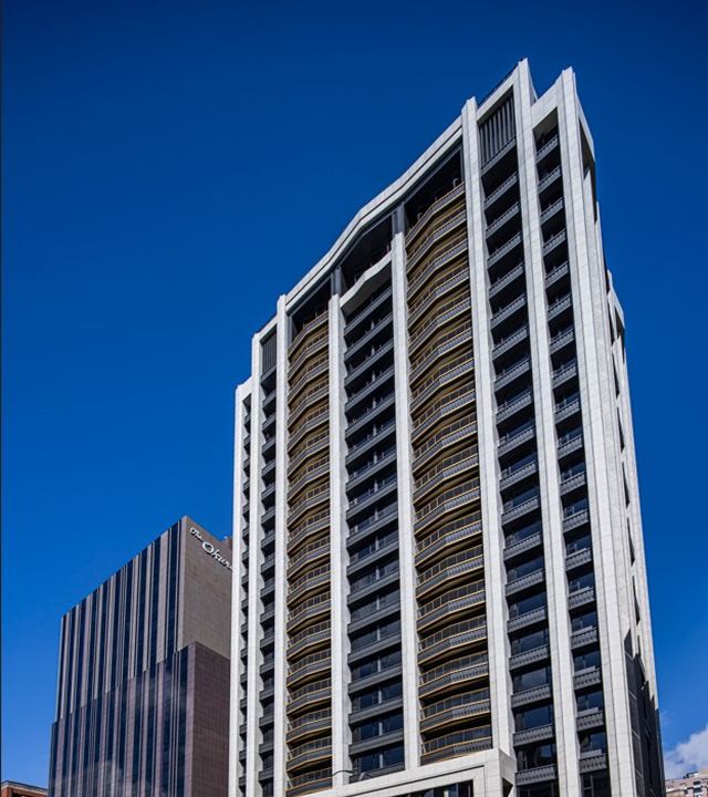由香港P&T建築設計事務操刀, 以高規格公共空間與線條比例,呈現頂級住辦建築語彙。